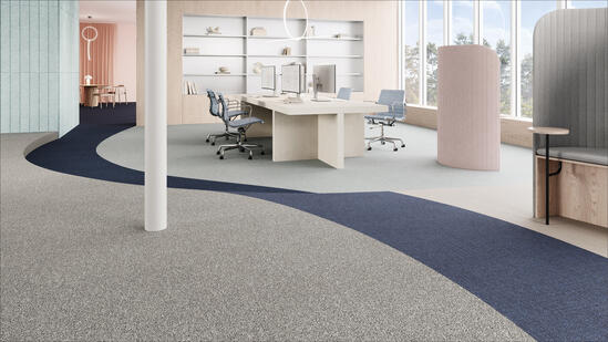 Featuring statement black yarn thread, tonal colour and an irregular, organic pattern, AirMaster Earth offers dramatic depth and tactility. These 9 updated accent colours and 9 neutral tiles can be used to create statement flooring designs with Classic and Sphere, such as room centrepieces or workplace zoning and routing.
