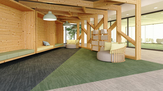 Academix的设计初衷即是通过淡雅有机的花纹营造出轻松活跃的空间,暗哑的胭脂红,随性的常青藤绿, 朴实的牛仔蓝,以及三种中性色调相互拼接搭配,简单而轻松的的在商业空间中营造了多维度的学术氛围,为员工身心健康提供软性的支持,以实现更有效率和更高价值体现的工作成果。